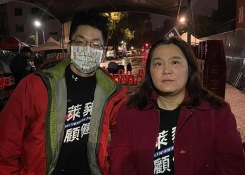 ▲陳玉珍與蔣萬安23日夜宿立法院外,抗議萊豬進口。(圖/翻攝自Facebook/陳玉珍 珍愛金門)