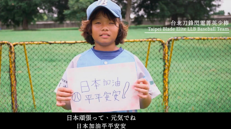 而「台北刀鋒閃電菁英少棒隊」來自各地熱愛棒球的小學生,他們也曾經到沖繩參與交流賽,對於日本也十分思念,更在卡片寫上「祝福平平安安,永不放棄」,並在片中對日本人說「為了下次見面,你們也要平平安安健健康康喔!」、「我永遠不會忘記你們的」。