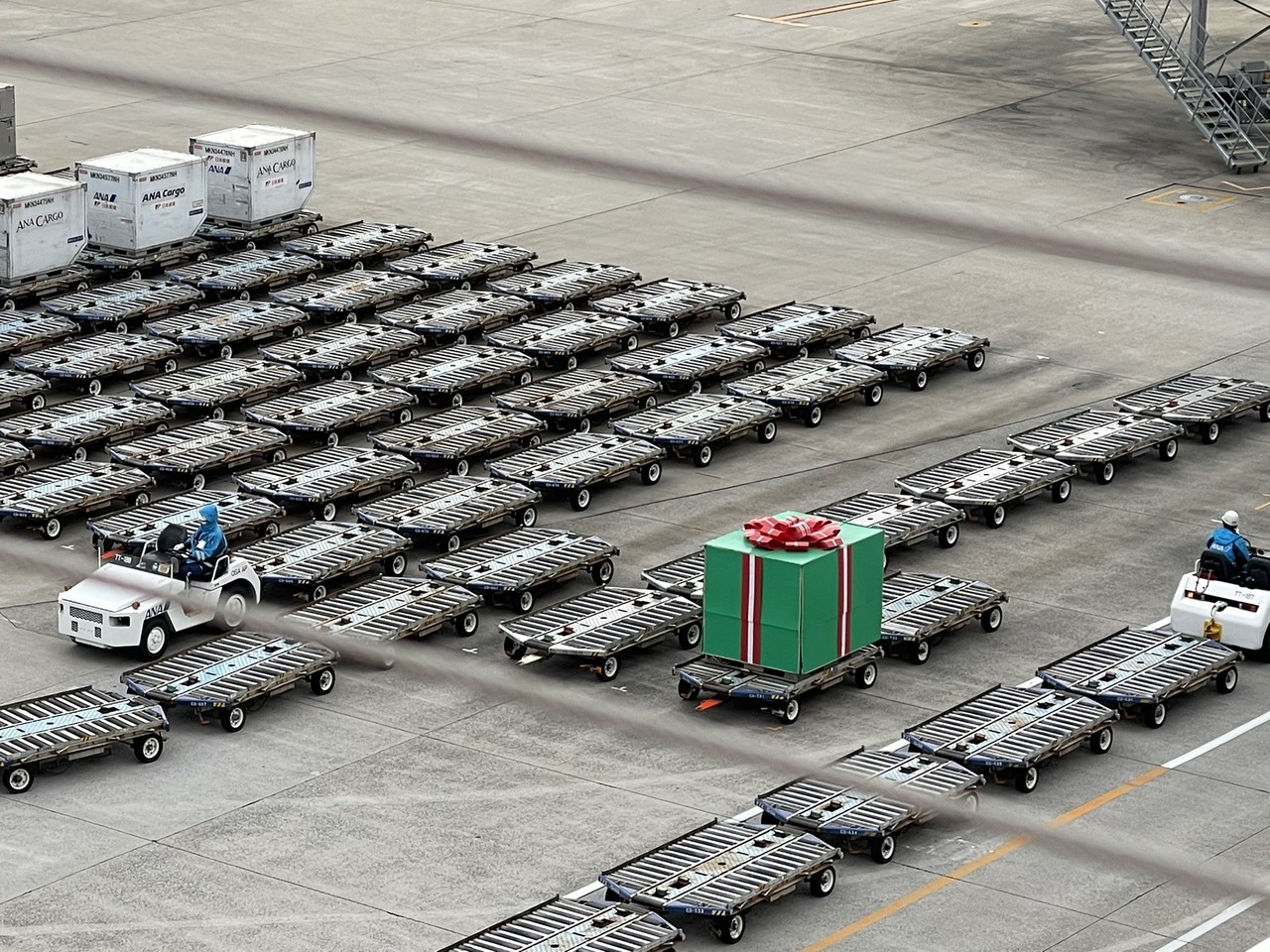 根據日本媒體「Jタウンネット」報導,一名網友「りゅー@JAL777_787」近日在推特上分享一張照片,並附文表示,他在在大阪的伊丹機場,發現有一個用紅色緞帶綑綁起來的「綠色巨型聖誕箱」,看起來就像是聖誕禮盒一樣,讓他驚呼「ANA(全日本空輸)居然有個禮物箱」。原PO表示,可能是飛機裝不下這個禮物,所以才暫時將他放在運輸物品的架子上。