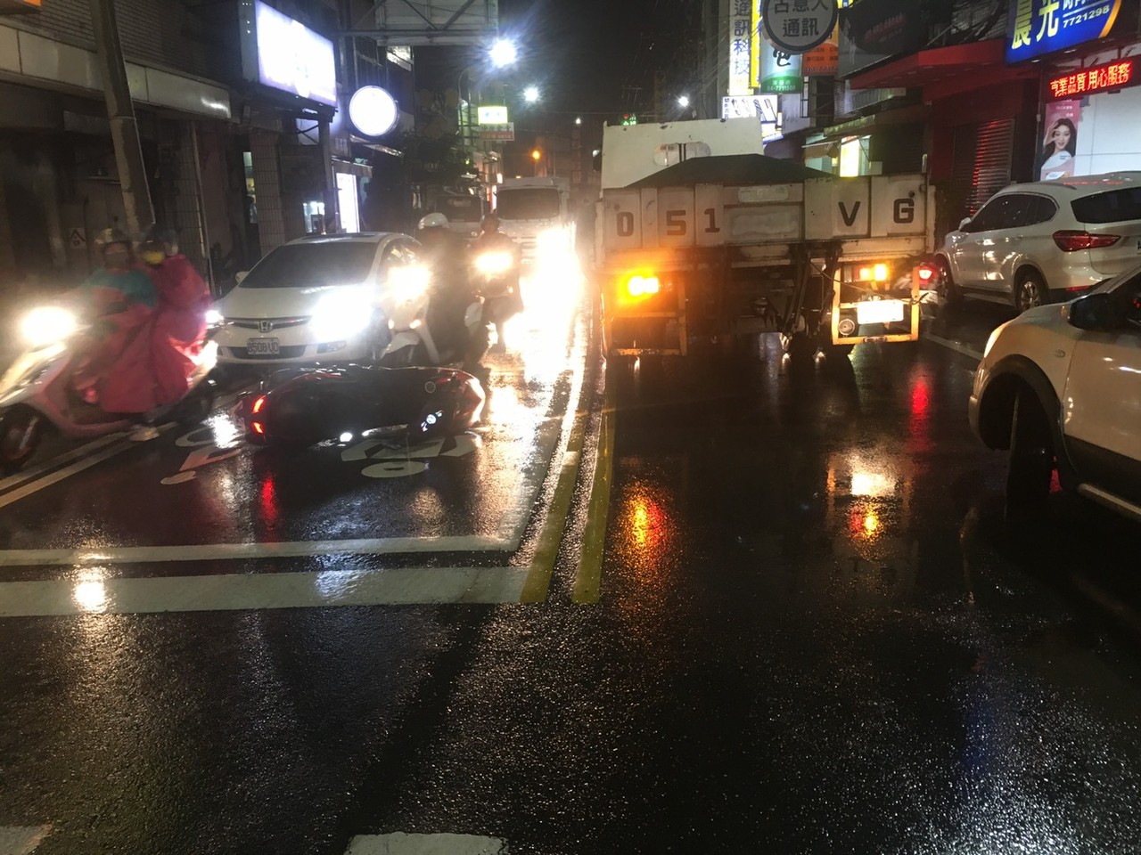 ▲騎士遭撞亡,美食外送員冒雨守護。(圖/翻攝自Facebook/~~我愛鹿港小鎮~~)