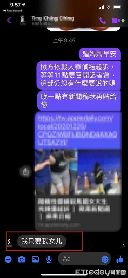 對此,記者詢問鍾女母親,她哭著說:「我只要我女兒!」、「誰能把我女兒還給我?」言語中仍透露出對女兒的不捨與疼愛。