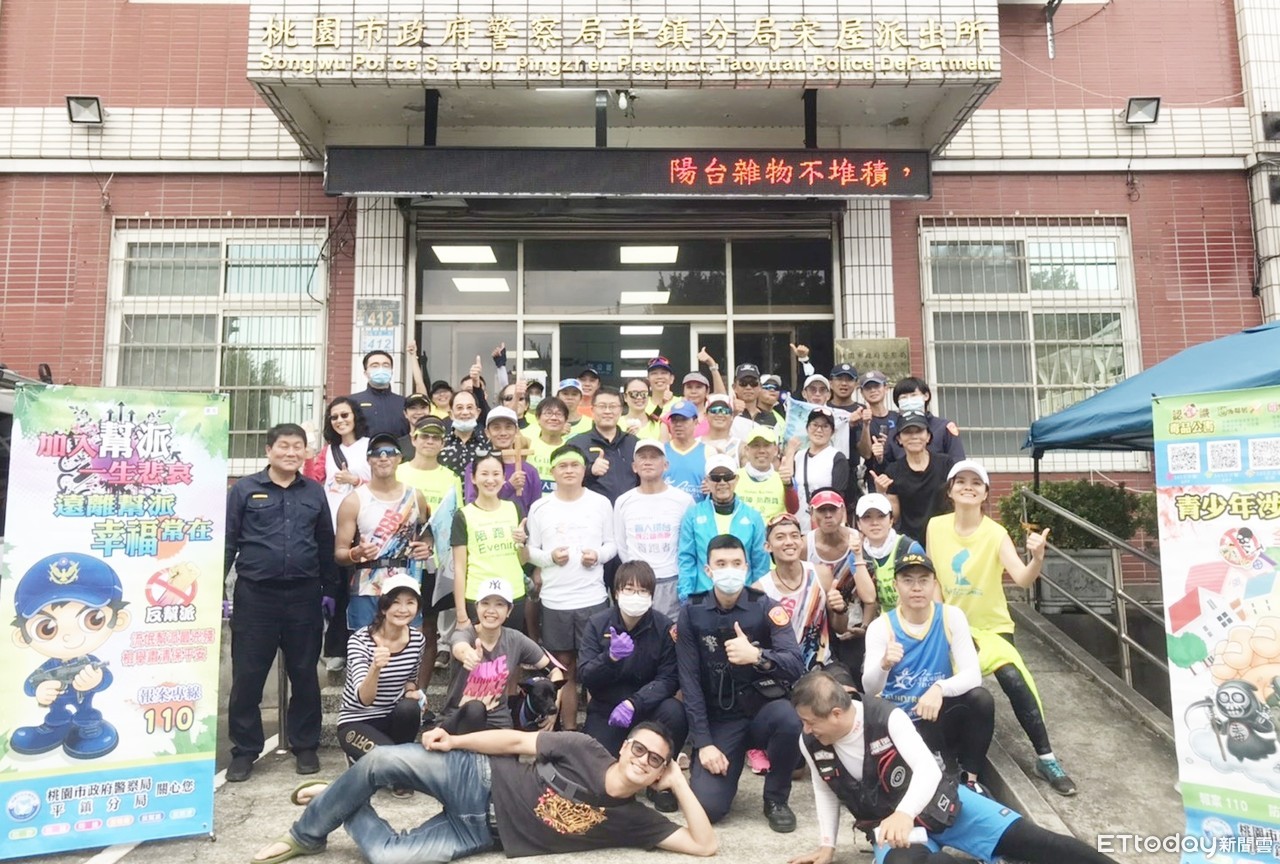 ▲2020台灣盲人環台路跑公益活動26日開跑,參與路跑盲人選手與陪跑員在宋屋派出所前補給站合影留念。(圖/記者沈繼昌翻攝)