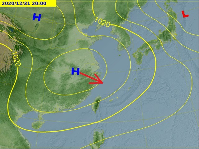 鄭明典26日在臉書發文,貼出跨年當晚8時的地面天氣圖,提到「分裂高壓」偏南出海。他解釋,高壓偏南出海,台灣受「西北流」影響,氣溫低同時會相對偏乾;乾冷的天氣加上強風,體感溫度會「偏低」很多。