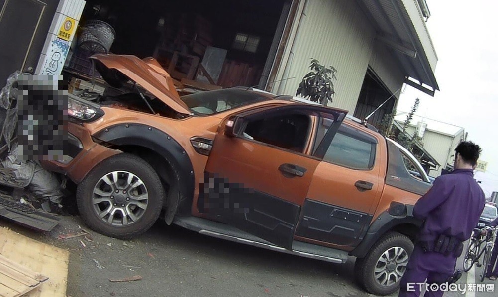 ▲肇事駕駛暈眩開車撞工廠。(圖/記者翁伊森翻攝)