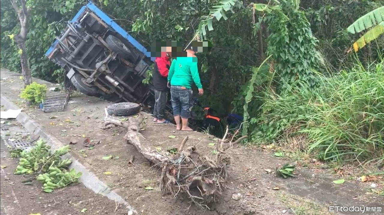▲台11線貨車翻落邊坡,2人受傷送醫。(圖/記者楊漢聲翻攝)