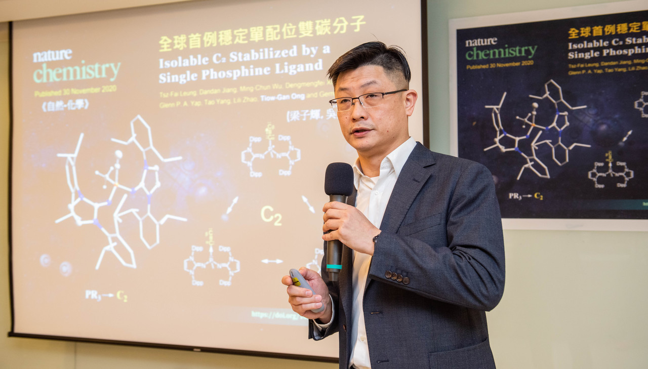 中央研究院今(28日)發布,化學研究所研究員王朝諺帶領的研究團隊在常溫下,成功合成穩定的單配位基(ligand)雙原子碳分子「R3P→C2」,成為全球首例,未來有望發展石墨烯、矽、鍺等半導體材料技術。最新研究已於11月30日登上國際期刊《自然-化學》(Nature Chemistry)。