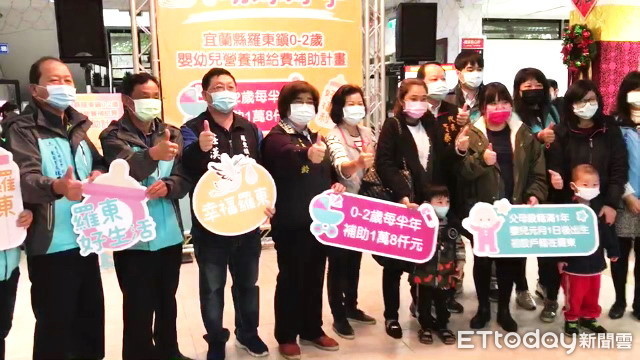 羅東年終報喜!鎮長吳秋齡28日表示,自2021年元月1日起,以後出生初設戶籍在羅東鎮的新生兒,每半年將可向鎮公所申請1萬8的嬰幼兒營養補給費,每名符合資格者最多可領兩年(0至兩歲),原有1次性的1萬元產婦營養補給費及中央發給的育兒津貼(每月2500元,1年共3萬元),再加上本鎮加碼的嬰幼兒營養補給費,設籍羅東鎮生育子女的父母第1年最高可領到7萬6的津貼及補助。