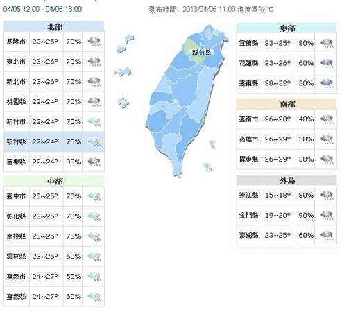 中央氣象局則提醒,5、6日兩天鋒面影響,北部、東北部、中南部地區及澎湖、金門、馬祖有陣雨或雷雨,東部及東南部地區有局部陣雨;6日下午起大陸冷氣團南下,氣溫明顯下降;金門及馬祖地區易有局部霧。