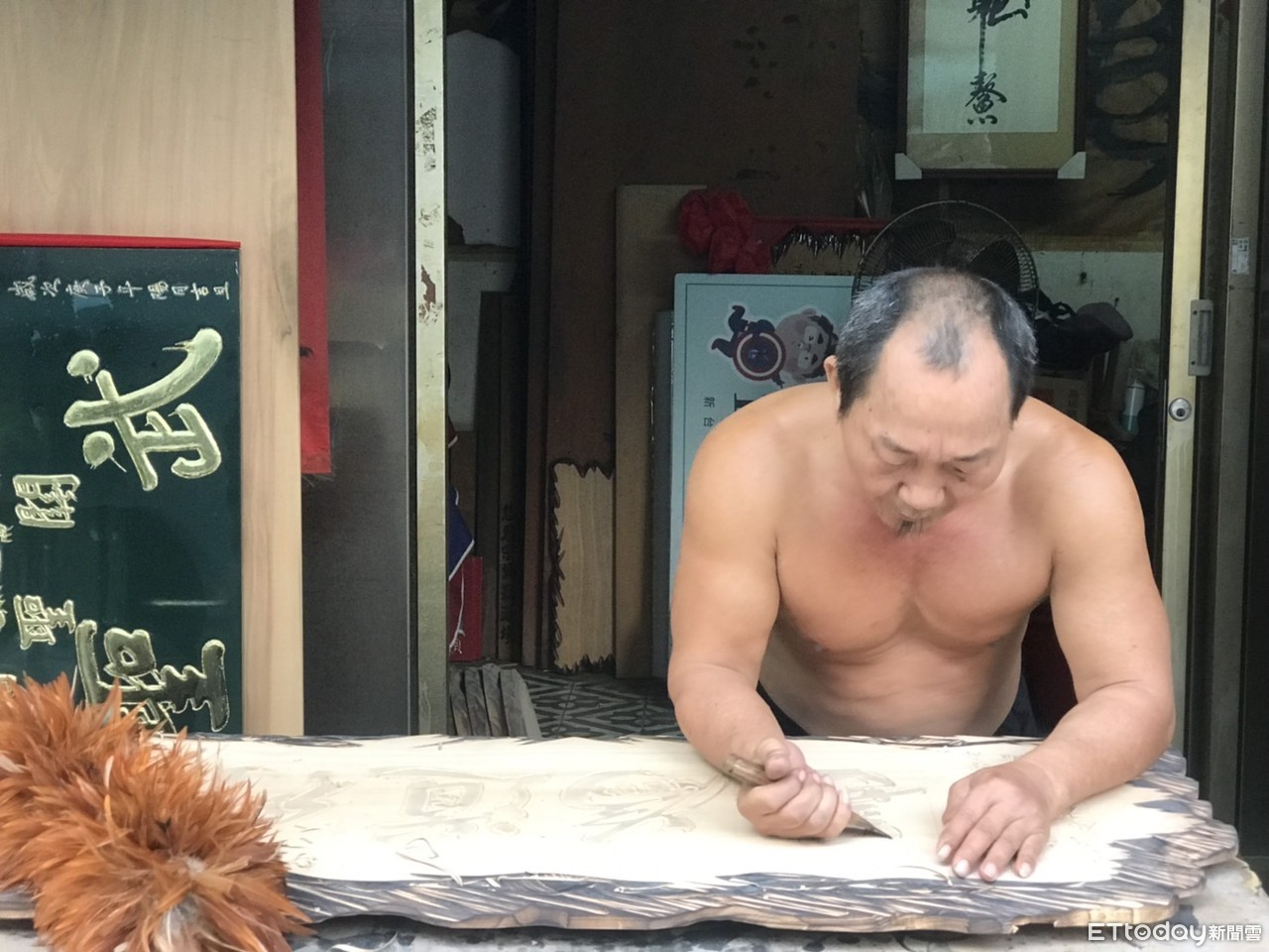 ▲他堅持手刻匾額 。(圖/記者洪靖宜攝)