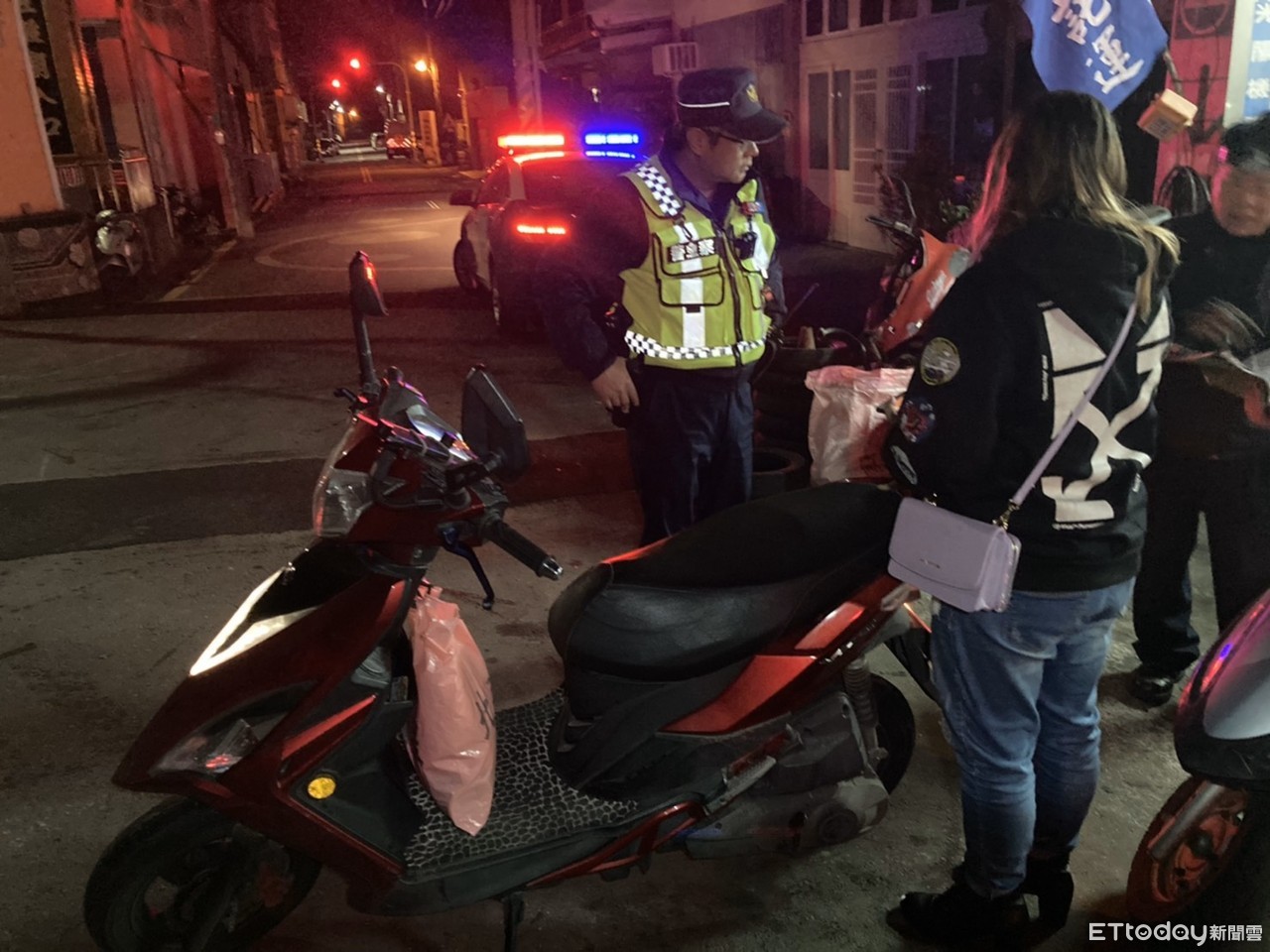 頭份警方表示,大河派出所副所長羅經仁、警員沈春安,日前晚間9時45分執行巡邏勤務,巡經苗栗縣三灣鄉臺3線100.5公里處發現有女子神情緊張獨自一人站在機車旁,遂上前關心,經了解劉姓女子所騎機車後輪爆胎,無法行駛。