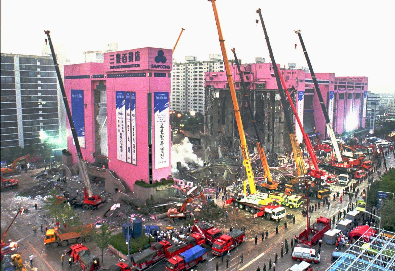 ▲南韓首爾三豐百貨公司於1995年6月倒塌。(圖/達志影像/美聯社)