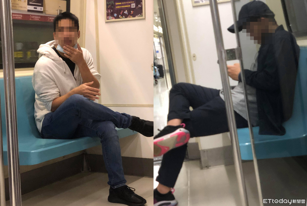 ▲有民眾目擊兩名口說英語的ABC在捷運淡水線上拉下口罩聊天,向站務人員反映也無效。(圖/記者張君豪翻攝)