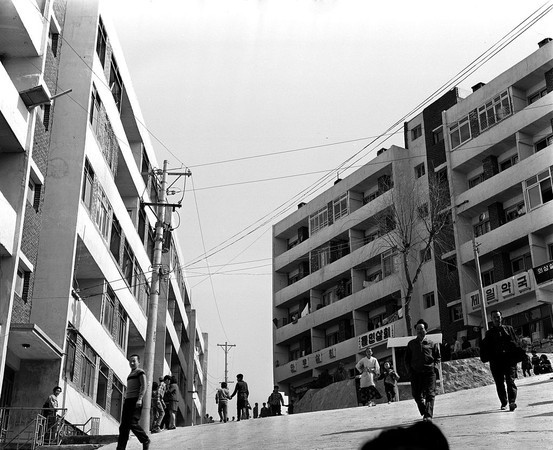 回憶起首爾在韓戰後的歷史,為求在戰火破敗下急速復甦,時任總統朴正熙1963年軍事政變掌權後,透過犧牲民主發展經濟,大批民眾從全國各地如沙丁魚般擠進首爾求職定居,都市各處蓋起被稱為「板子村」(판자촌)的貧民窟,直到1966年美國總統詹森訪韓,為挽回國際顏面,朴正熙決定著手進行首爾現代化工作,拆除貧民窟,並以政府力量蓋起「市民公寓住宅」。