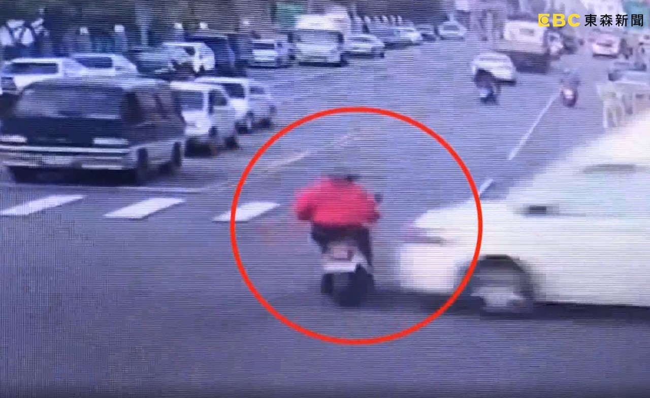事件發生在28日傍晚,監視畫面中可以看見,路口燈號轉成綠燈時,其他車輛聽見鳴笛聲,沒有急著加速往前,女騎士則油門一加通過路口,下一秒就與抵達路口的救護車相撞。救護車儘管有緊急閃避,高速之下仍讓婦人摔地受創,只好先在路邊停車處理車禍,所幸婦人送醫後沒有大礙。