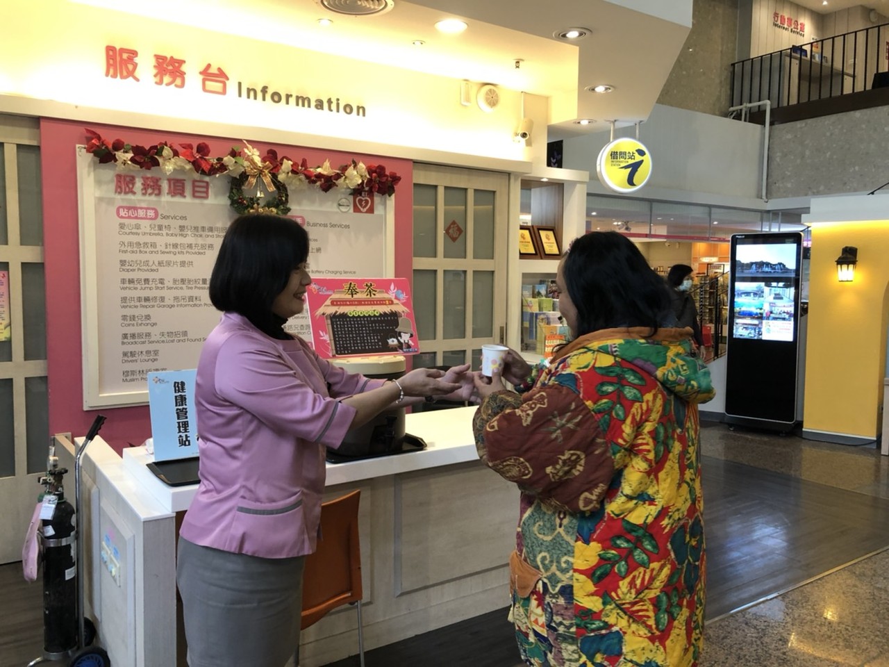 服務區也為有心血管疾病的朋友備妥各種簡易保護設施,例如血壓計、氧氣瓶及AED(自動體外心臟電擊去顫器)等等,提供臨時有需要民眾使用。