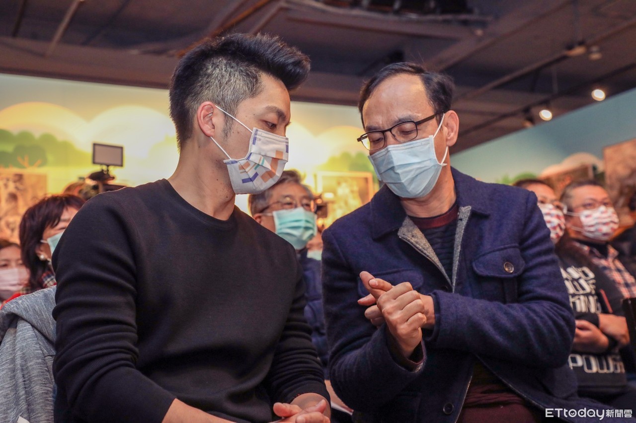 ▲朱立倫、蔣萬安出席「狐獴媽媽攝影展開幕茶會」。(圖/朱立倫辦公室提供)