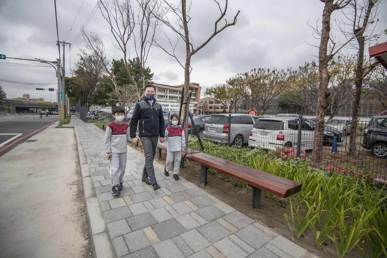 市府指出,林智堅市長上任後啟動通學步道改善計畫,全面盤點轄內學校需求,投入超過1億5千萬元,推動14處通學步道改善,目前已陸續完工。近日再獲內政部營建署核定6千多萬元,補助增設5校3.6公里通學步道建置與改善,將使社區與學校間更加密切貼近。