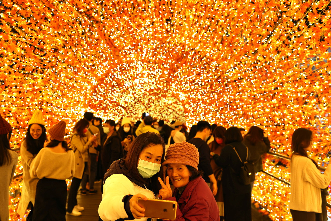 ▲新冠疫情肆虐全球,台灣民眾還能群聚開心欣賞耶誕燈節。(圖/路透)