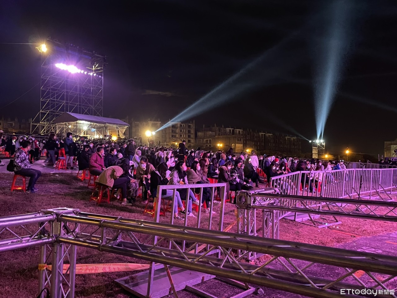 ▲《紫耀義大》跨年晚會現場,不少民眾拉椅子聚在一起坐。(圖/記者許宥孺攝)