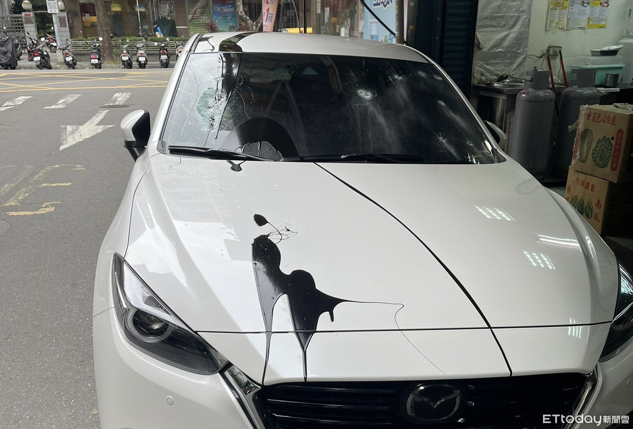 警方在元旦當天10時許接擭報案,在中華路二段315巷口內有車輛被砸毀,整個車窗被砸毀,還被人潑灑黑色油漆,警方發現車前擋風玻璃有幾個小孔,原本以為是彈孔,但初步鑑定排除槍擊。