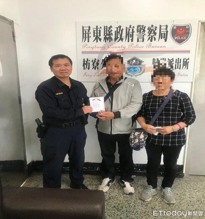 ▲屏東縣枋寮警分局歸崇派出所警員鄭進利將善款交由黃的親友 。(圖/記者陳崑福翻攝)