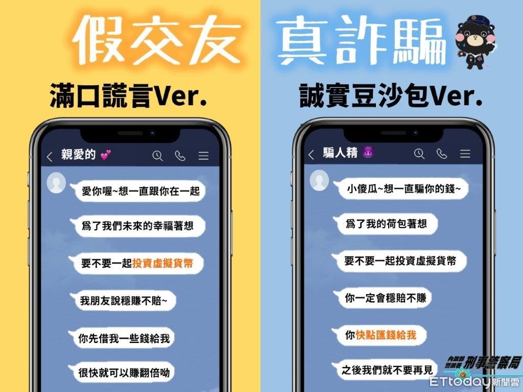 ▲刑事局對於詐騙集團以談戀愛誘騙投資的吸金手法提出預警。(圖/記者張君豪翻攝)