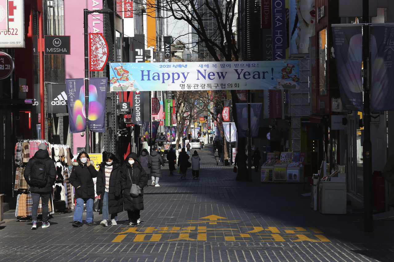 ▲南韓首爾新年元旦街頭冷清,全國禁止5人以上群聚。(圖/達志影像/美聯社)
