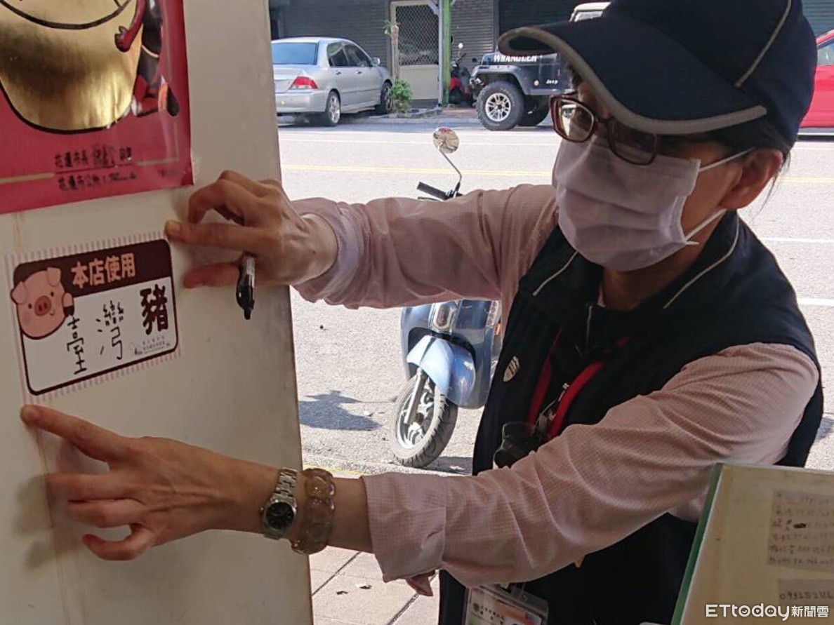 ▲花蓮縣自上個月實施全縣地毯式輔導業者正確張貼豬肉原產地標示。(圖/花蓮衛生局提供,下同)