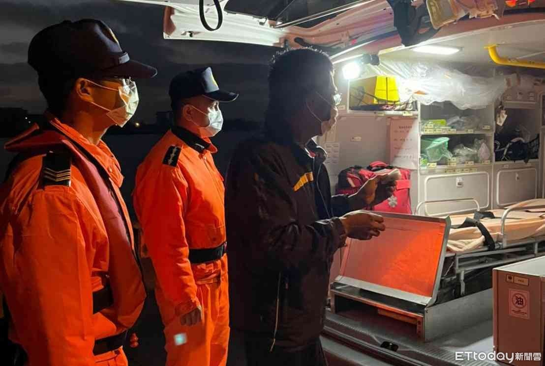 ▲南部分署第11岸巡隊將軍安檢所人員,協助不慎遭纜繩割傷流血的船員送醫。(圖/記者林悅翻攝,下同)