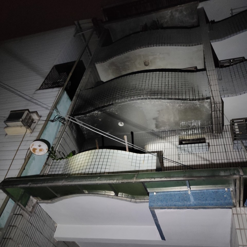 ▲高雄大社區一處民宅火警,一名女子疑似為了逃生從樓上跳下重傷。(圖/記者黃子倩翻攝)