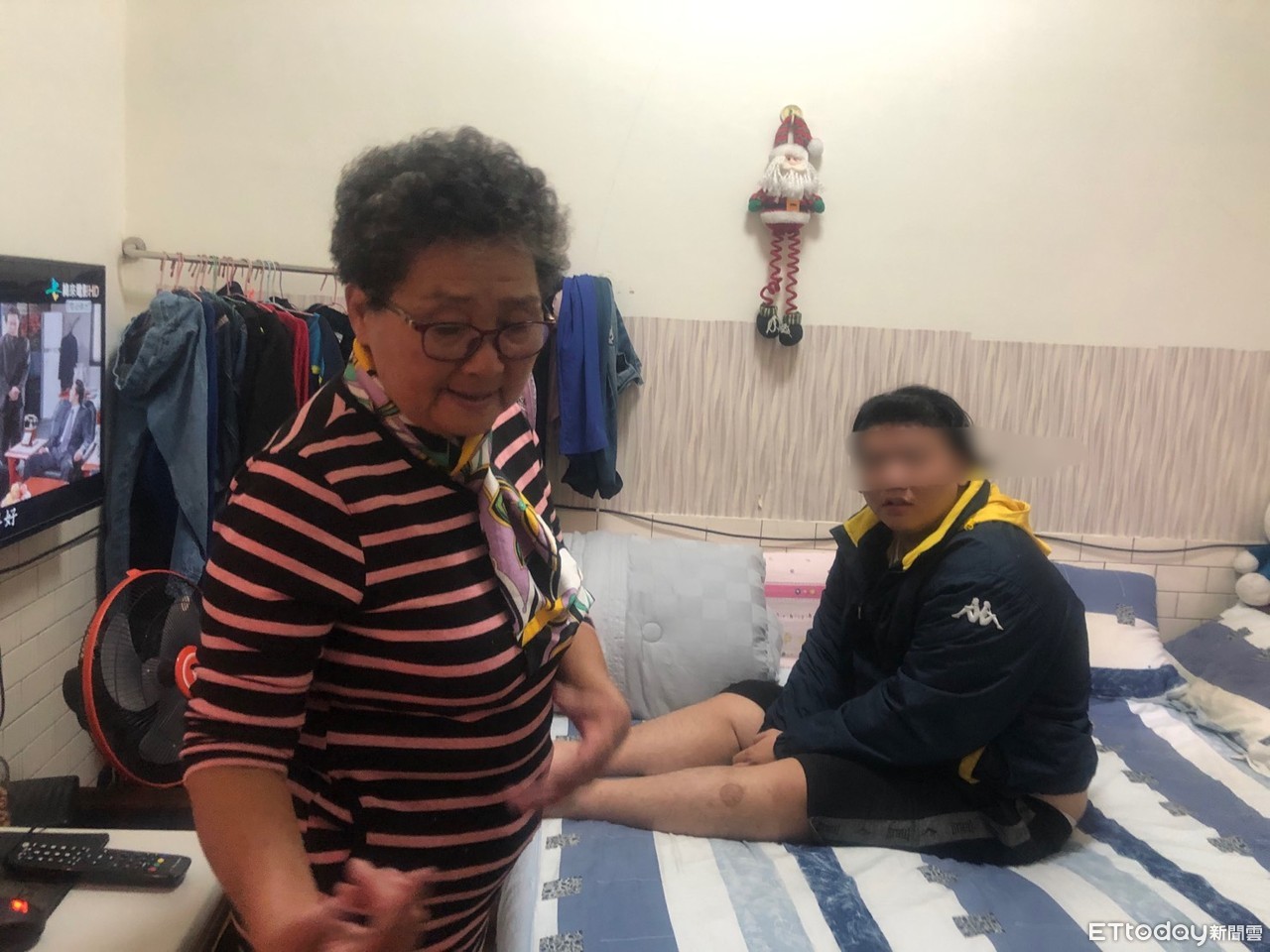 ▲林高毅下半身癱瘓後,撫養他的阿嬤每天協助翻身按摩、料理生活大小事。(圖/記者黃子倩攝)
