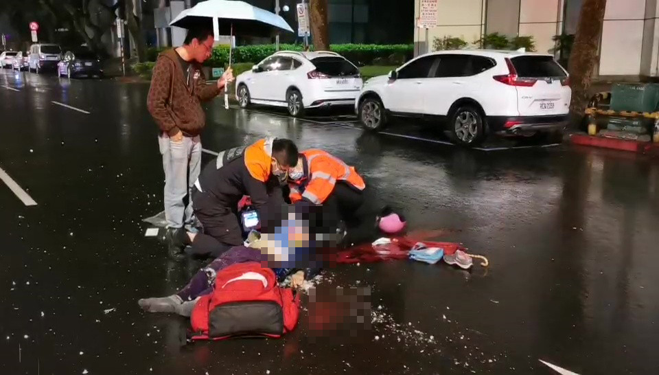 警消獲報到場,發現林婦頭部重創,呈現OHCA狀態,於是立即替她施行CPR,並送往馬偕醫院急救,最後仍宣告不治。警方經酒測已排除吳翁酒駕肇事,確切事故原因及肇事責任有待調閱監視器釐清。