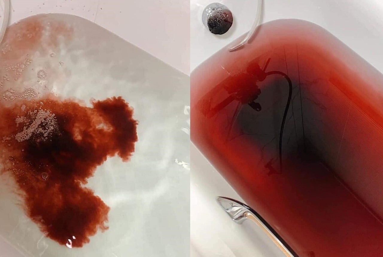 ▲浴缸內的水被染成血紅色。(圖/翻攝自Facebook/爆廢公社公開版)