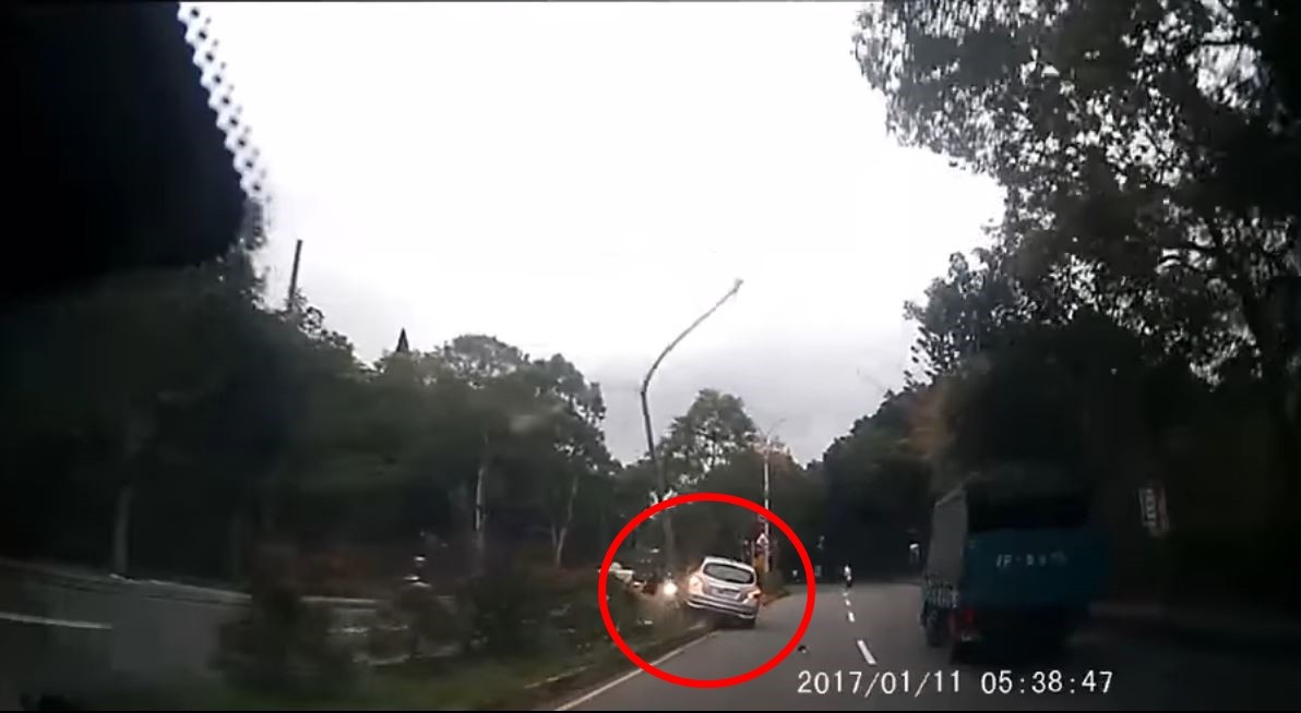 影片中看到一台銀白色小客車慢速行駛在寶山路的內車道,途中順著道路過彎,由於車速不快,因此不斷被後方車輛超車越過,25秒後小客車開始出現飄移狀,先從內側車道飄至外車,再慢慢回到左方內側車道,一路持續靠左,直到騎上分隔島,然而小客車並未因此停下,繼續向前行駛,一路狂鏟,將分隔島上的路樹、路燈連根鏟起,讓人覺得不可思議又好笑。
