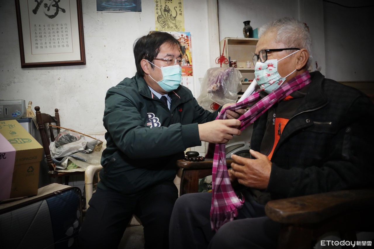 ▲台南市長黃偉哲為長輩在寒冬中送暖。(圖/記者林悅翻攝,下同)