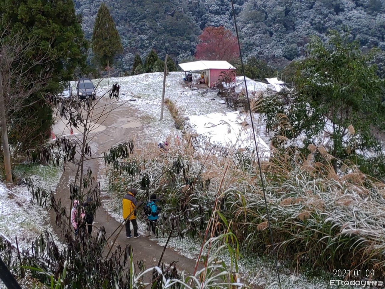 此外,東眼山森林遊樂區8日凌晨也飄雪了,林務局表示,夜間氣溫達0度以下,濕度95%以上,讓海拔千公尺以上的夜裡山上悄悄降下雪花。特地上山追雪的民眾表示,今天去應該還可以看到殘雪,往制高三角點東眼瞭望台可見白雪景象。