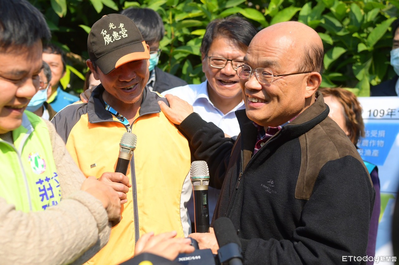 蘇院長說,1月8日他在行政院會即已裁示,請農委會做好因應寒害的相關措施,主動聯繫地方政府,及早告知農、漁民做好防寒準備,全國起步、整體進行,照顧到所有受到損失的農漁民等,讓農民感受到「有政府、會做事、顧得實在」。