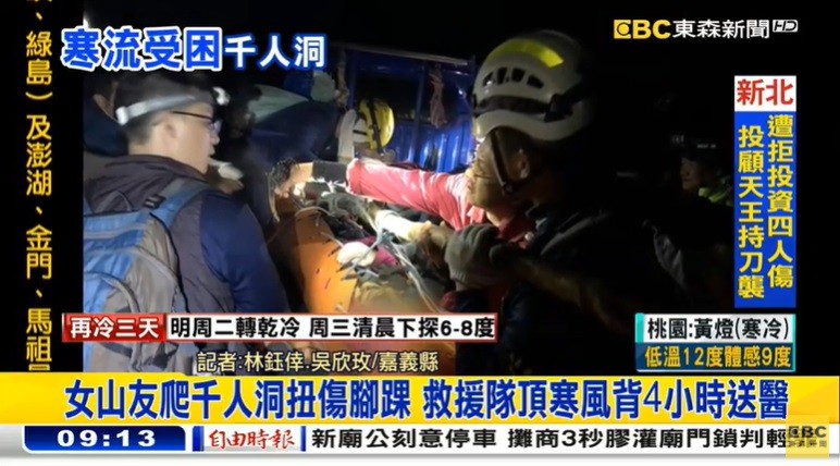 一名54歲女山友日前與另外5人(3男2女)組隊前往阿里山知名景點千人洞,沒想到10日下午下山時,不慎扭傷左腳腳踝,無法自行走路。由於正值寒流來襲期間,嘉義縣消防局獲報後,立即整裝摸黑上山救援,花費4個小時,總算在同日深夜11時52分將受傷的女山友背下山,結束這場驚魂記。