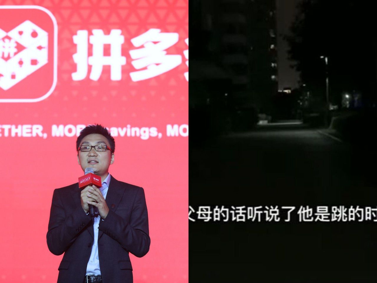 大陸電商巨頭拼多多日前才慶祝市值破2000億美元,不料數日後爆出壓榨勞工,繼23歲女員工在加班回家路上猝死後,再有一名譚姓工程師在家中跳樓自殺。目擊者透露,「他當時穿著睡衣睡褲,然後趴在那裡,聽他們說是23歲,跳的時候父母正在搞飯菜。」