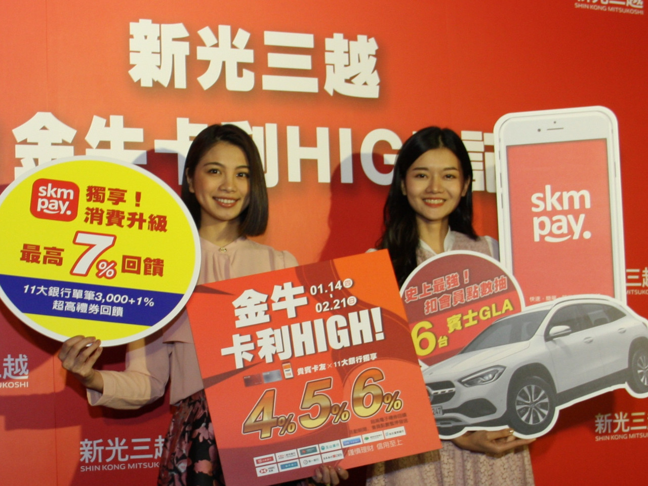 新光三越「金牛卡利HIGH」將於1月14日至2月21日開跑,為期39天,相較於往年有縮短,但優惠力度不輸給週年慶,此次單卡刷卡累計滿1萬元以上回饋4%、滿6萬元以上回饋5%、滿20萬元以上回饋6%電子贈品禮券。業者期望吸引更多年輕客群,搭配行動支付skm pay擴大回饋規模,綁定11大指定銀行信用卡消費任一單筆達3,000元再加碼1%、最高7%回饋。