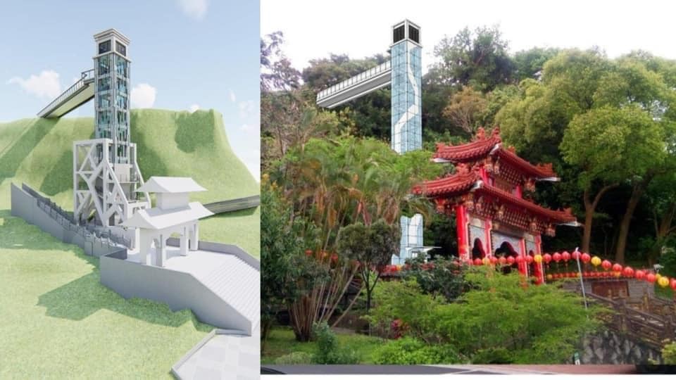 ▲李明璁表示,無法想像莊嚴優美的芝山巖惠濟宮,矗立「突兀至極」的電梯塔。(圖/李明璁提供)