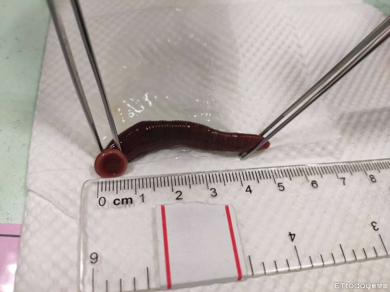 一名61歲曾姓男子因為在山上工作關係,常喝山泉水解渴,但莫名原因連續流鼻血好幾個月,到診所求診也找不出原因,直到台中長安醫院透過鼻腔內視鏡檢查,醫師才從男子鼻子後面的鼻咽部竟拉出一條長約5公分的水蛭!