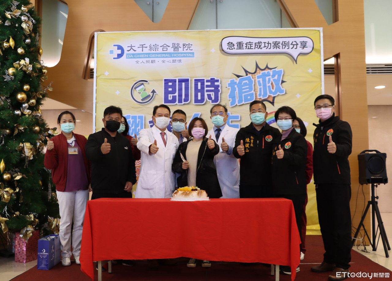 苗栗市1名羅姓男子(41歲),因心肌梗塞在家中昏倒、失去呼吸心跳,被緊急送往醫院急救,歷經近一小時的CPR及電擊,成功恢復心跳及血壓後,立即進行心導管治療,打通阻塞的血管,並接受48小時的低溫療法,最後清醒恢復意識,且活動自如同正常人一樣。大千特地為羅先生舉辦慶祝會,羅先生及家屬也非常感謝大千醫療團隊,讓他重獲新生。