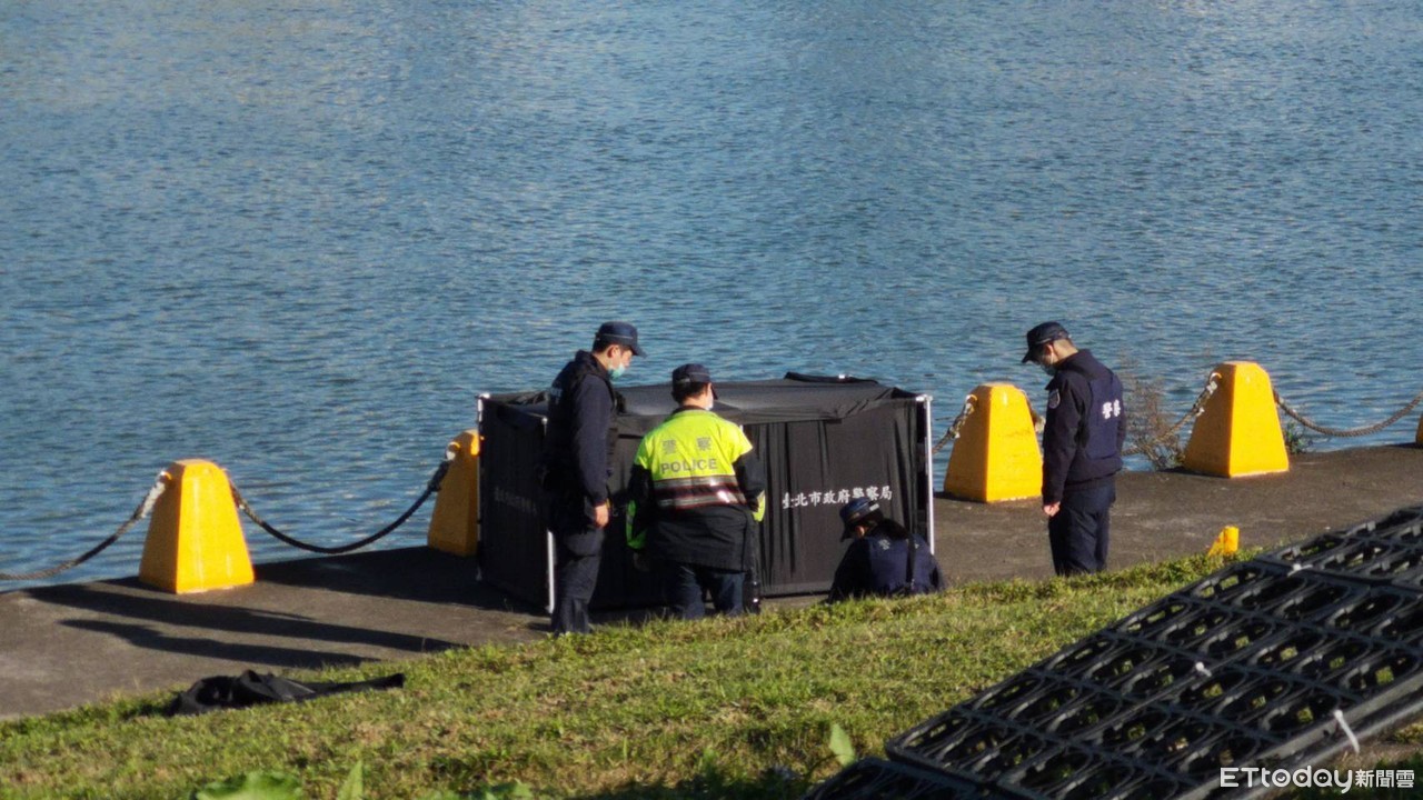 ▲台北市基隆河五號水門外河濱公園14日出現一具浮屍。(圖/記者黃彥傑攝)