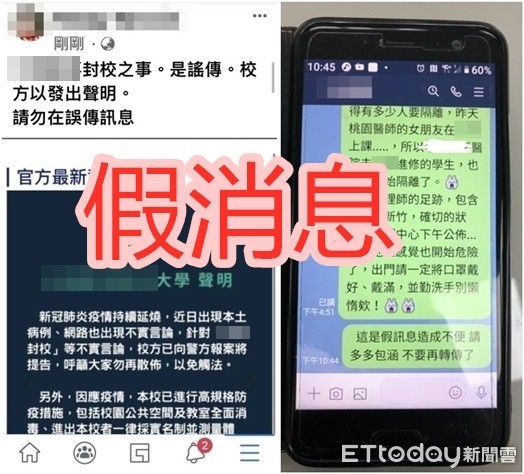 ▲網路謠傳新竹某校「疫情持續延燒…新竹xxxx大學已經封校,不曉得有多少人要隔離…」的假消息,讓校方非常頭痛。