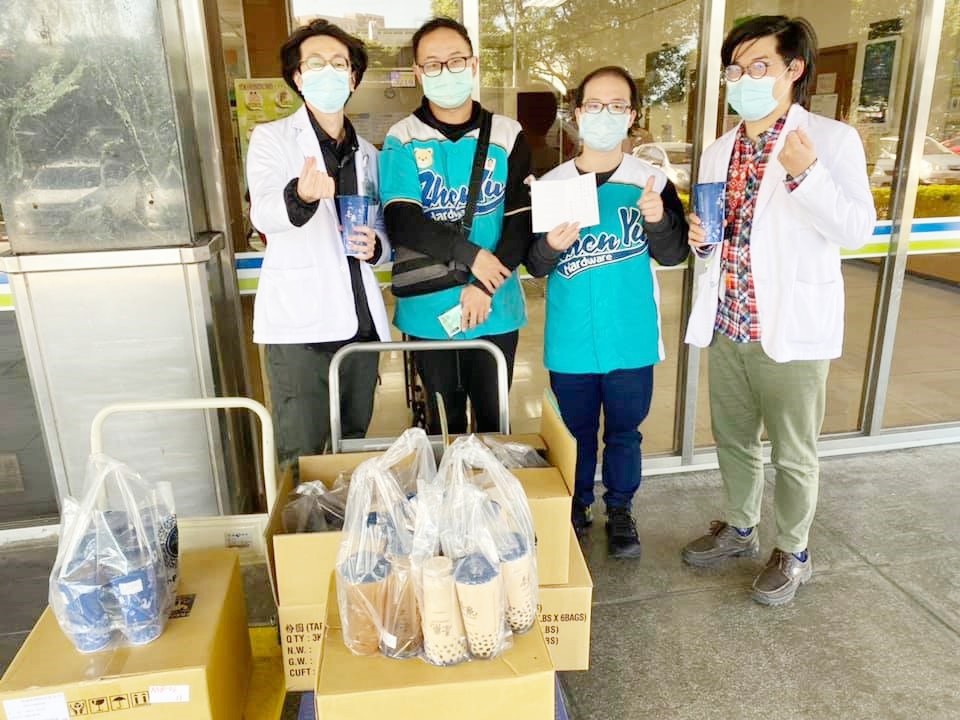 ▲因北部某醫院醫護人員確診暫停營業消毒的桃園振宇五金行,13日下午送百杯熱飲至醫院慰問醫護人員,醫院將照片上傳臉書。(圖/翻攝自醫院臉書)