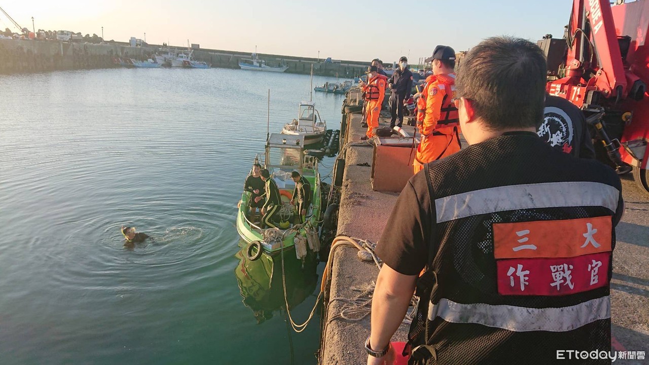 新北市警消14日下午接獲報案,稱三芝區有一輛汽車衝入後厝漁港,立刻派人往搜救,而眾人到達現場後,發現一輛藍色廂型車落入海底,且駕駛受困其中,目前正在搶救當中。