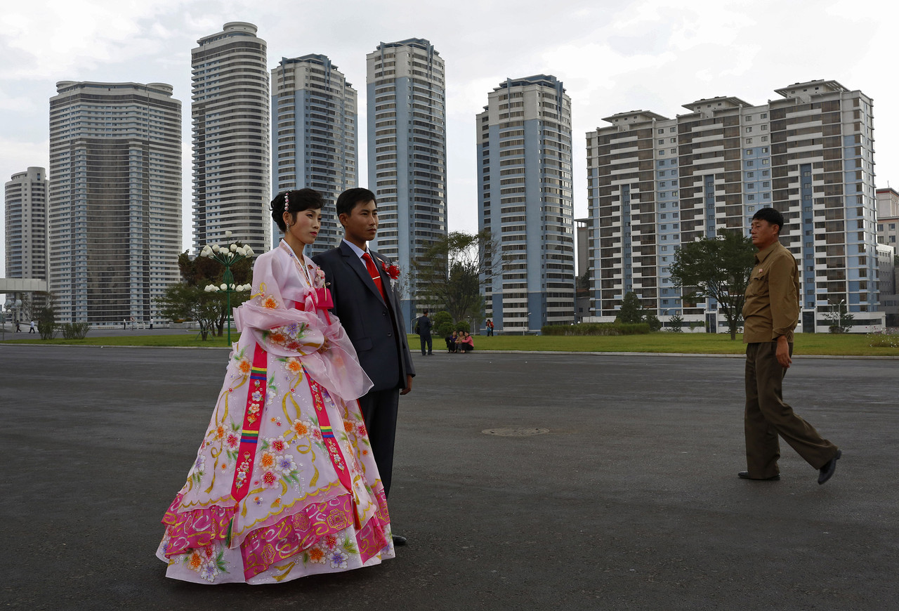 ▲《朋友》為北韓60年代以後首部以離婚為主題的文學作品,圖為平壤新婚夫婦。(圖/達志影像/美聯社)