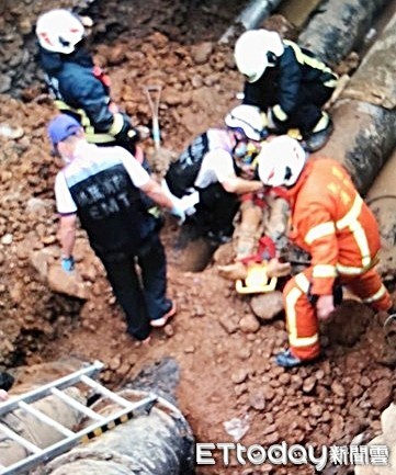 ▲桃園機場WC滑行跑道工程在2018年間8月間施工期間,3名工人施工時突遭土石活埋,消防人員現場搶救。(資料照/記者楊熾興翻攝)