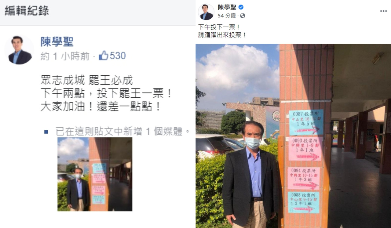 ▲陳學聖臉書發文疑似拉票恐觸法,緊急移除相關文字 。(圖/翻攝自Facebook/陳學聖)